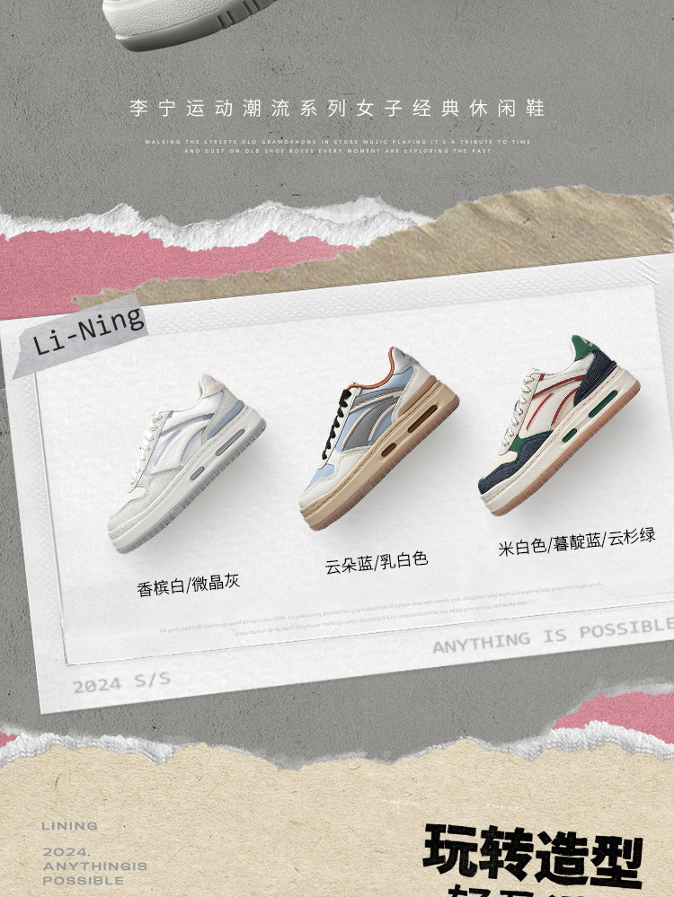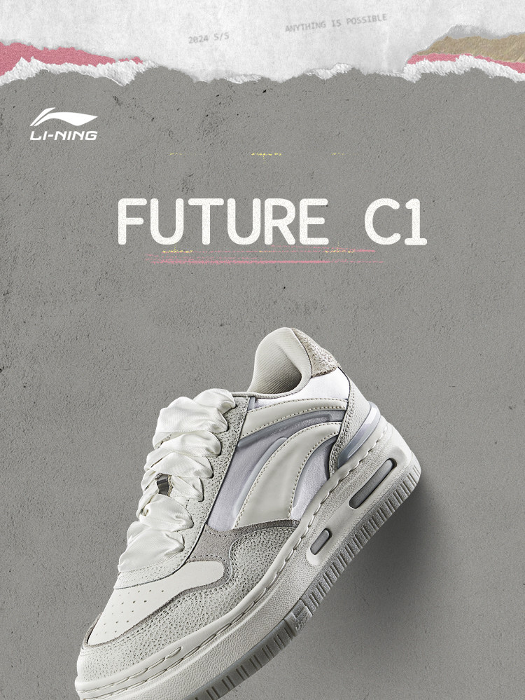 Li Ning FUTURE C1丨Sneakers Women’s New Casual Shoes Comfortable Soft Elastic Sneakers Skateboard Shoes Low-top Sports Shoes